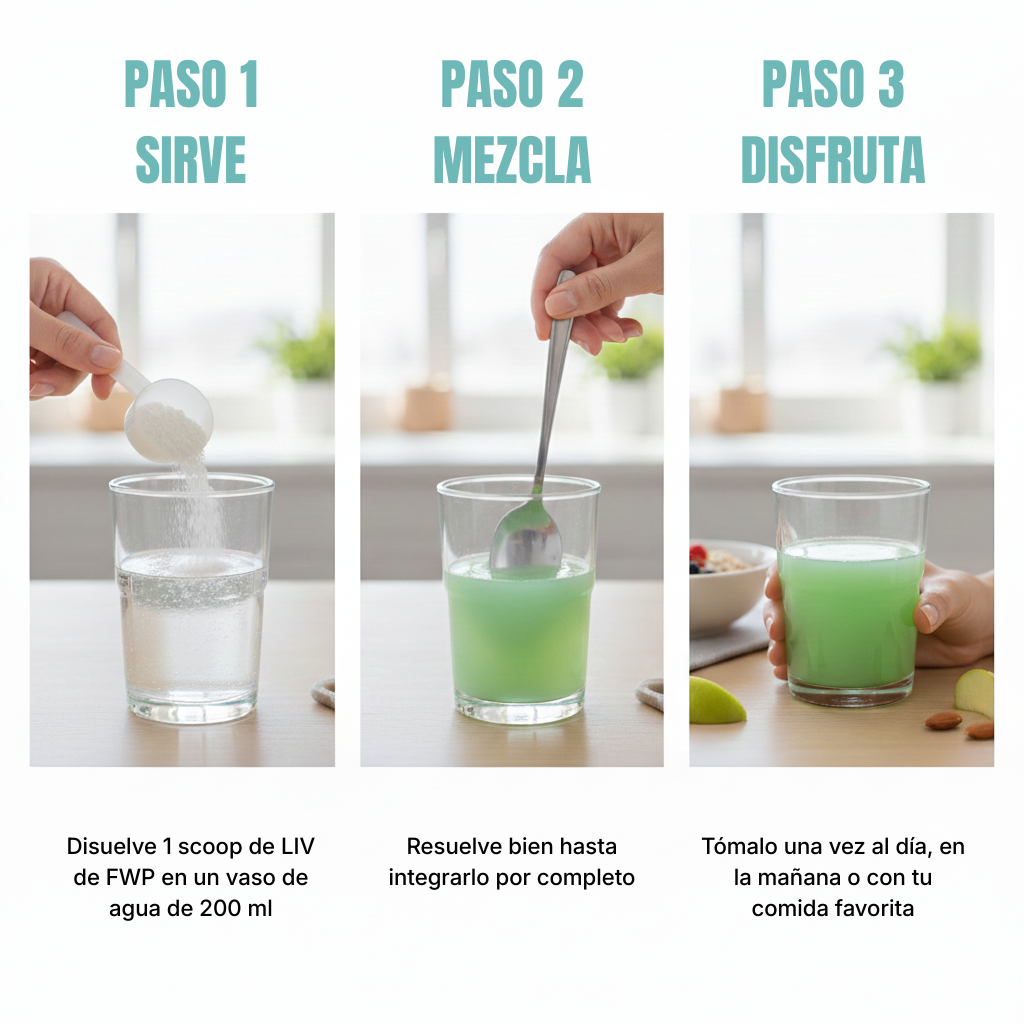 FWP LIV funciona mejor como complemento de una alimentación equilibrada y un estilo de vida activo.